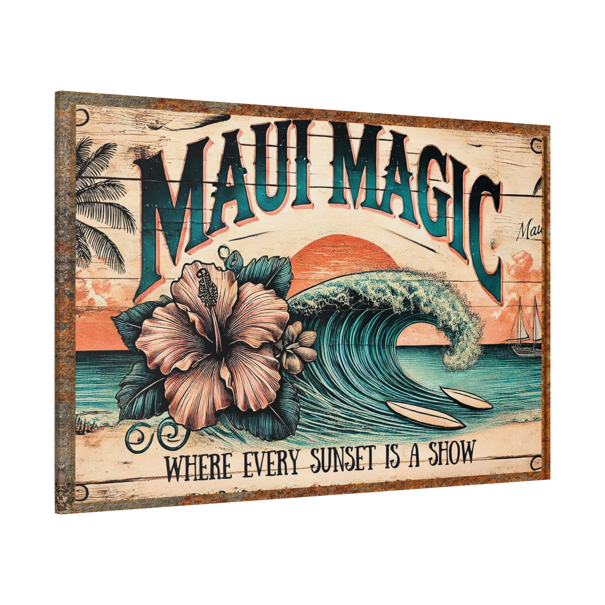 Vibrant Hibiscus and Ocean Waves - Maui Canvas Art Matte Canvas, Stretched, 1.25"