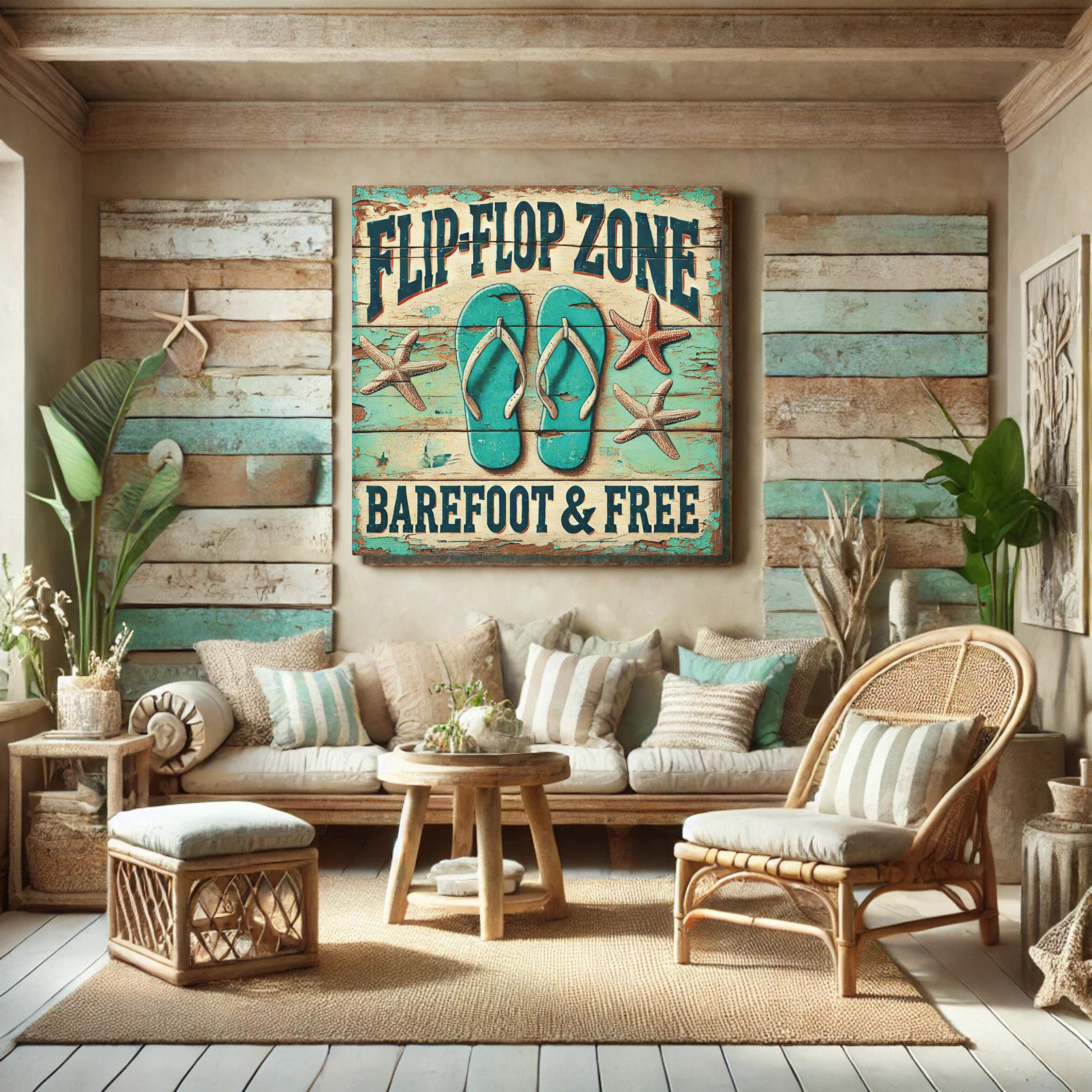 Carefree Coastal Vibes with Flip-Flop Zone Canvas Art Matte Canvas, Stretched, 1.25"