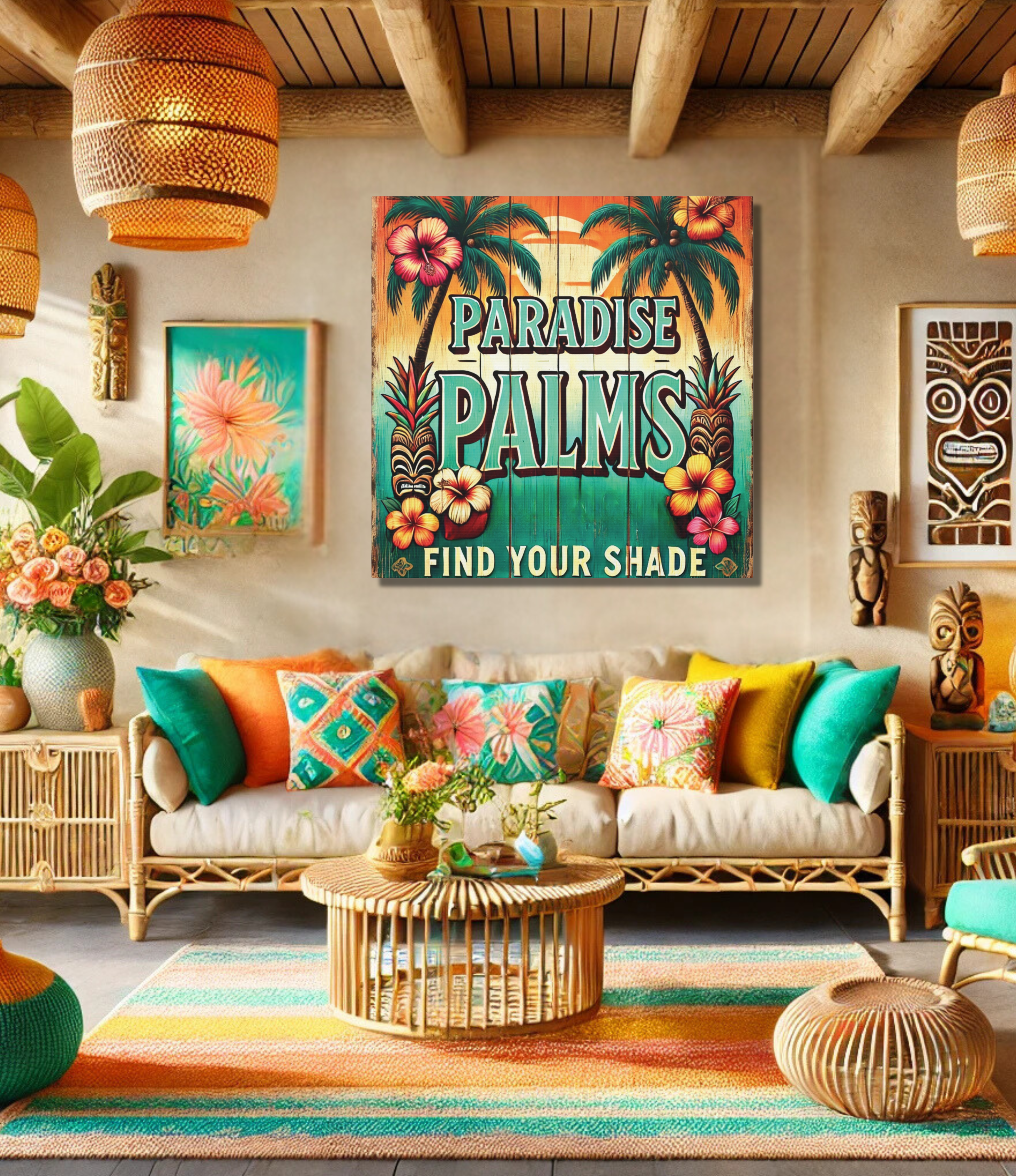 Vintage Island Charm: "Paradise Palms" Canvas for a Relaxing Vibe Stretched, 1.25"