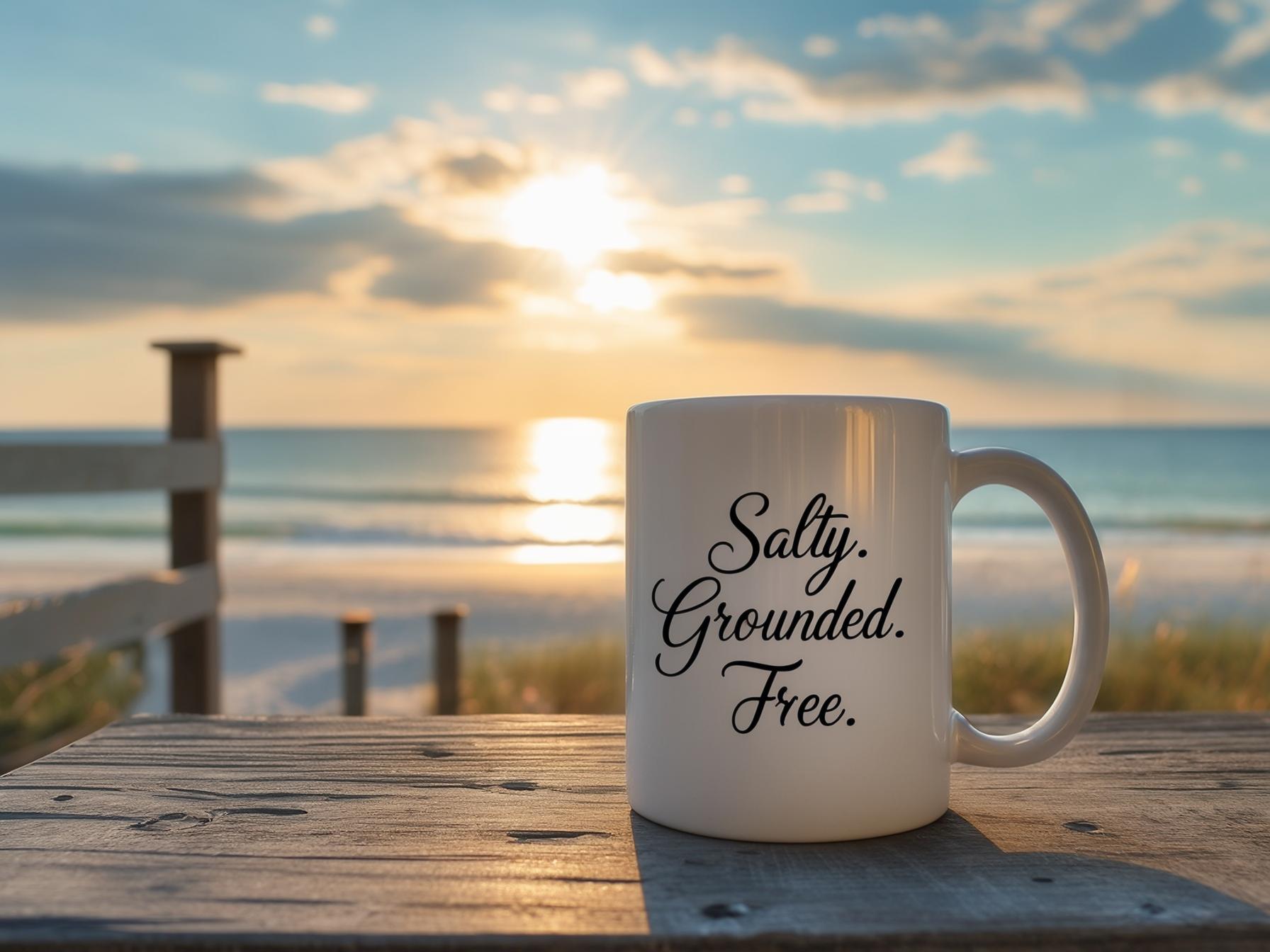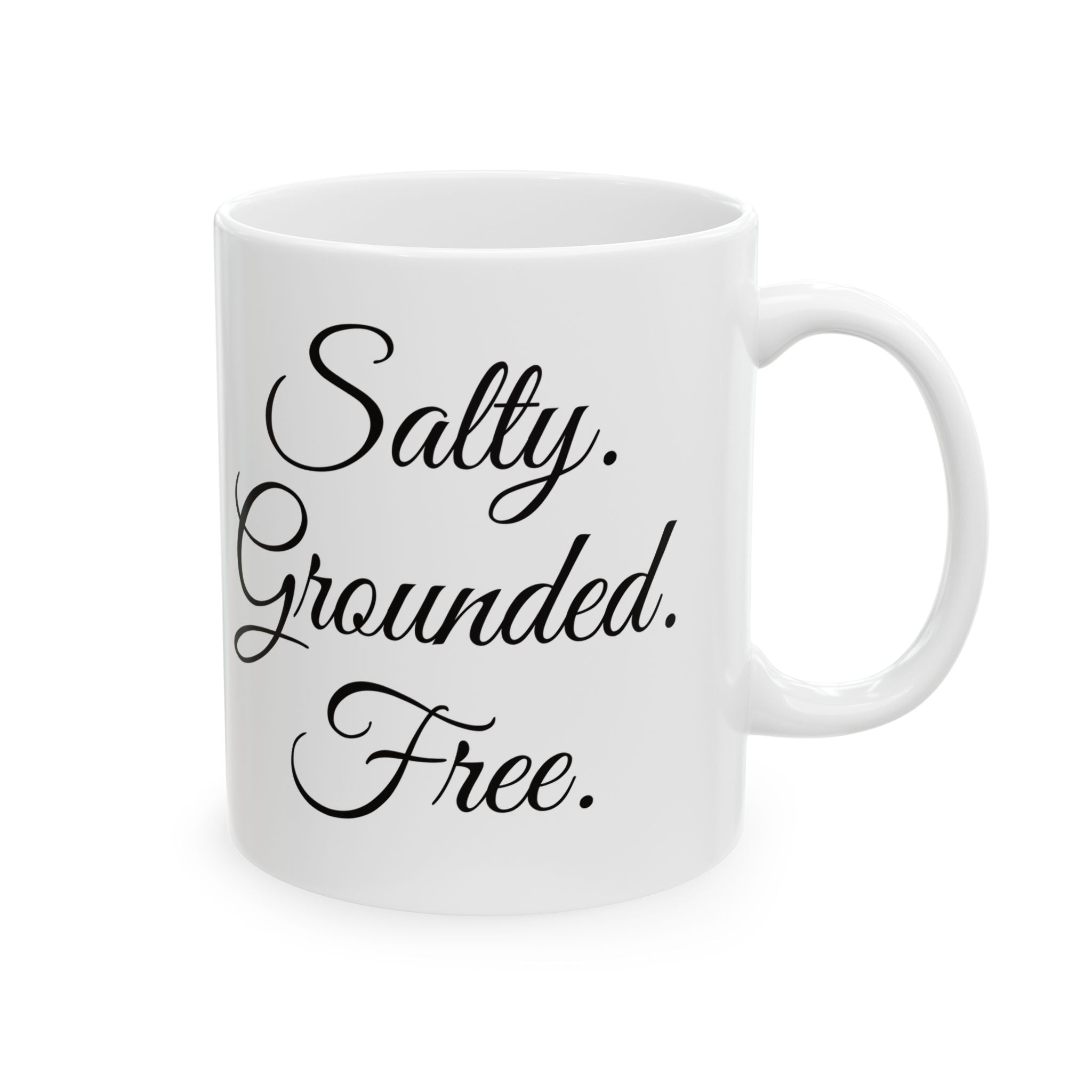 Salty. Grounded. Free. — Morning Ceramic Mug, (11oz, 15oz)