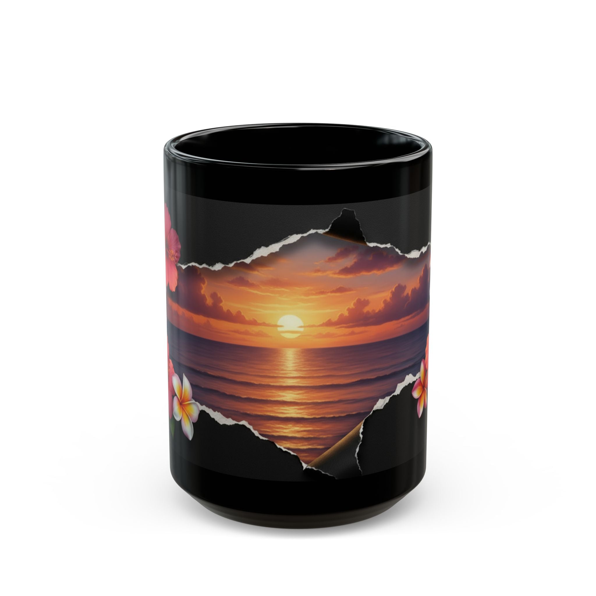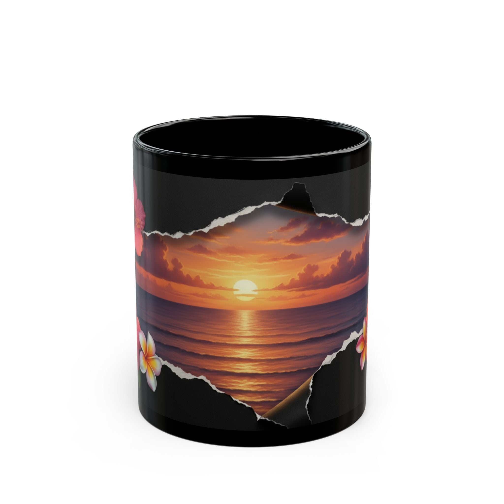 Island Escape” Black Ceramic Mug – A Window to Paradise, 11oz, 15oz